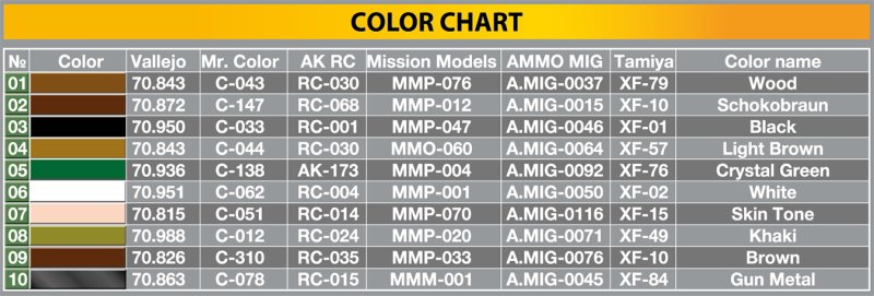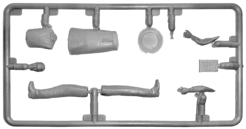 Kit contains models of three figures with equipment, cafe furniture and accessories.